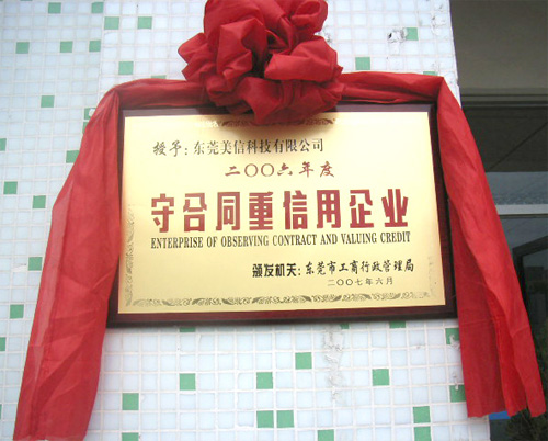 东莞工商局授予美信科技“守合同重信用企业”荣誉称号