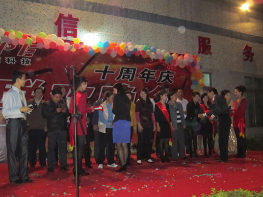 19:00许, 董事长宣布: 美信科技10周年晚宴及晚会正式开始!