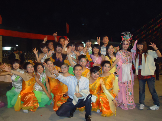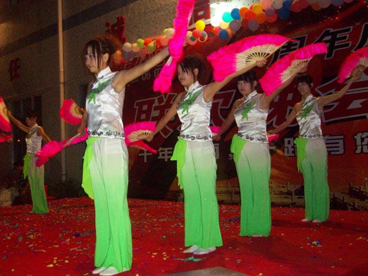 接下来是晚会表演的时间, 随着表演舞蹈<<好运来>>的六个欢快而漂亮的品保部女工靓丽登场,台下欢呼声, 尖叫声四起, 激情四溢、美伦美幻的10周年庆典晚会就此正式开始……