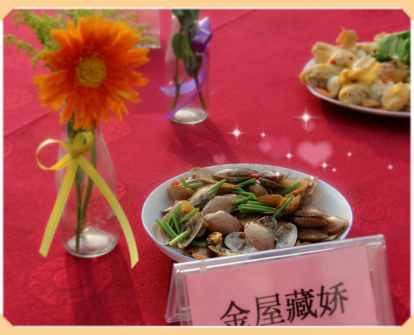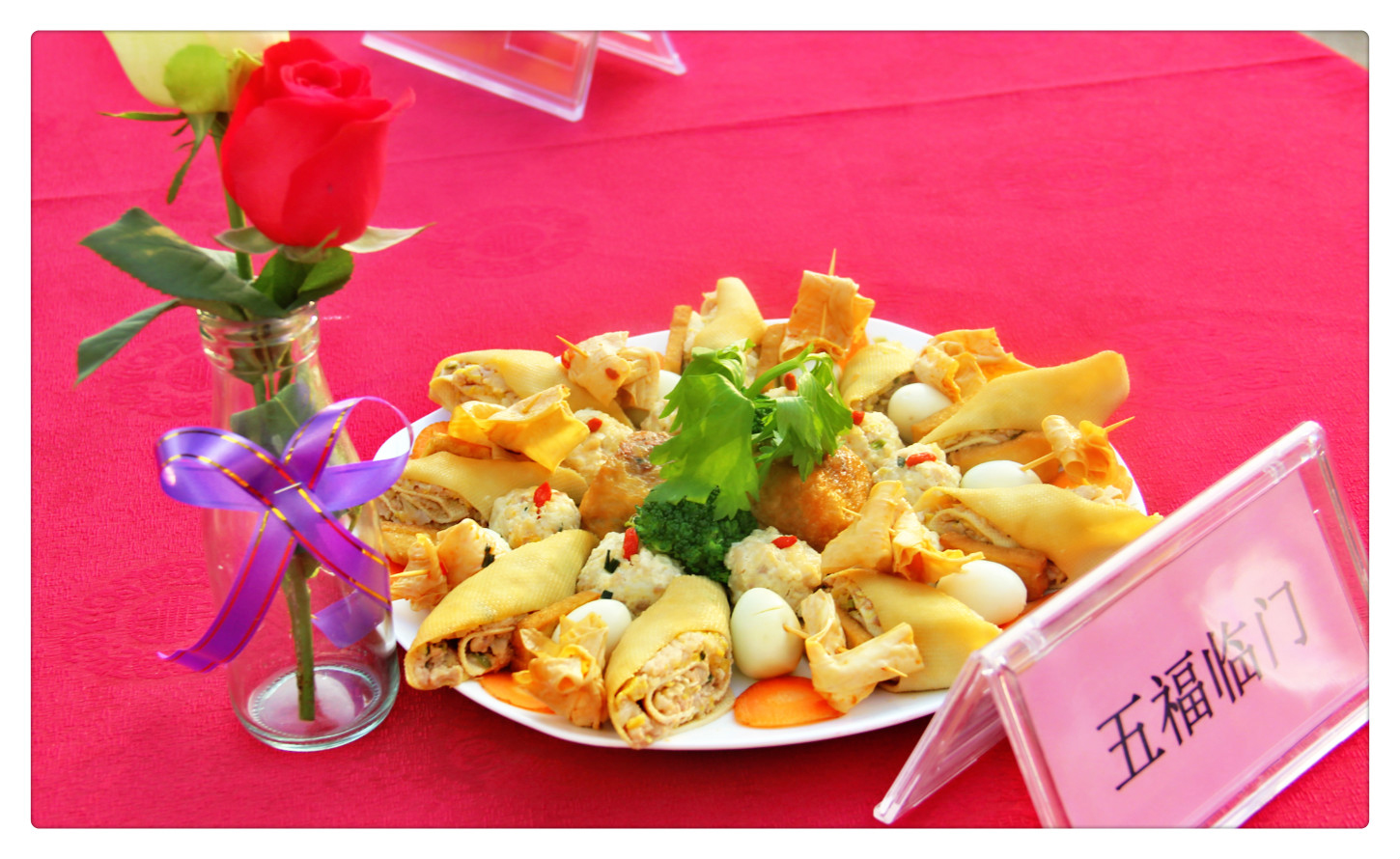 作品“五福临门”,将5种丸子完美的结合,配上一点香菜的点缀,淡雅中却令人唇齿留香,期望美信在未来的发展路上,五福临门,福星高照,一切都顺顺利利;作品“金屋藏娇”,一道简单的炒花甲,却香飘十里,美味,可口,好吃。