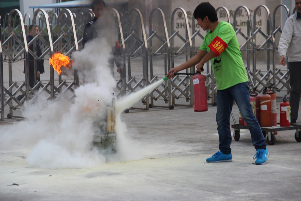 演练的项目是使用干粉灭火器进行实战灭火演练,干粉灭火器实战灭火演练主要用于初起火灾的灭火扑救,它对固体火灾及带电类火灾有良好的扑救效果。