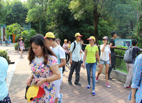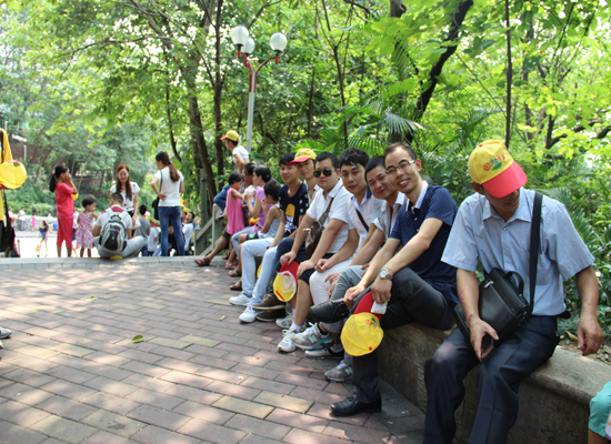 临近12点半,导游安排在沿江路一饭店就餐,广东口味,菜味鲜美,尤其那大盆汤,真是不错! 饭后小憩后,即赶赴动物园,有不少带了家属和小朋友,一进了动物园,看到了各式的动物,小朋友满眼的好奇,恨不得多长几双眼睛, 玩得汗流浃背也一点都不觉得累,看黑猩猩时,可能是不喜欢一大群人围着它指指点点,不时吵闹影响到了它,黑猩猩耷拉着眼睛一步一步走了过来,左手向上飞扬,以为打招呼,结果出现一小截砖头,幸亏准头差,不然有人要受伤了, 真是好险,看来这黑块头也是个喜欢暴力的家伙!