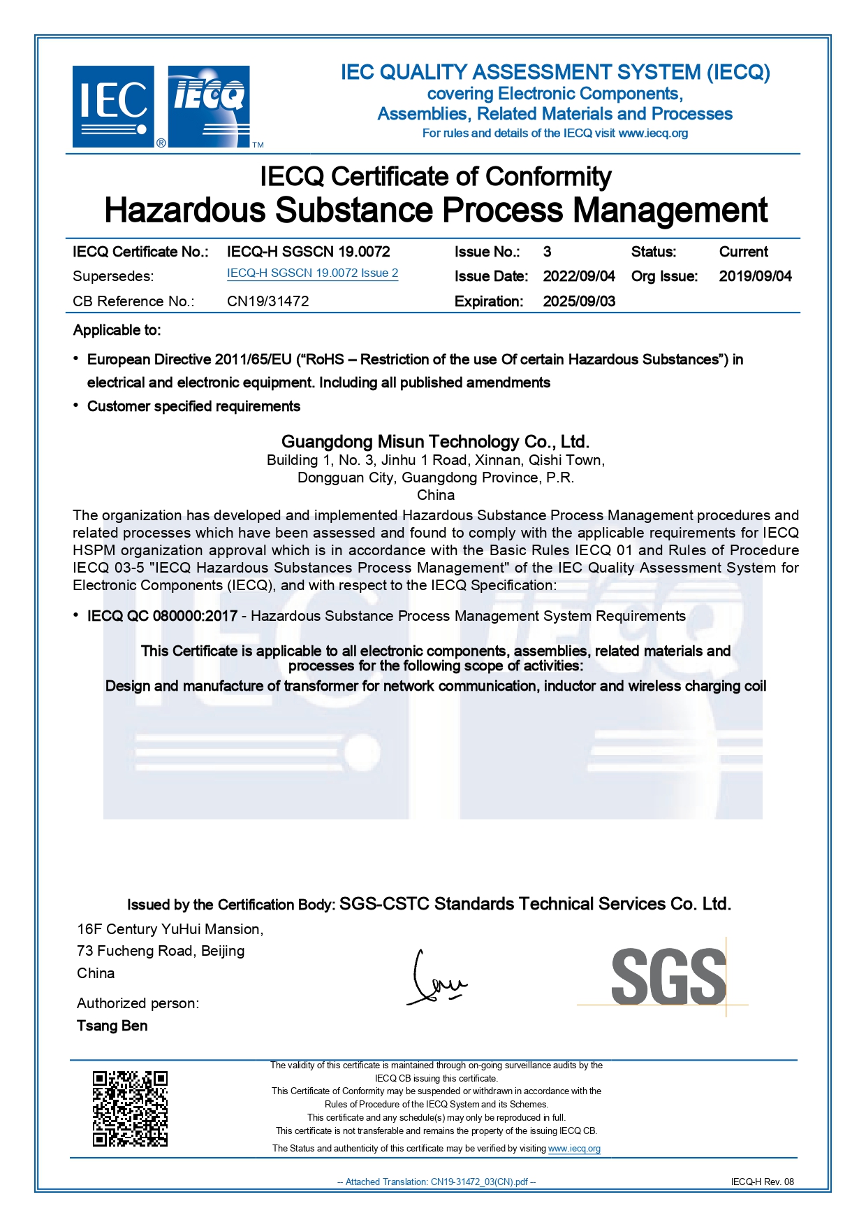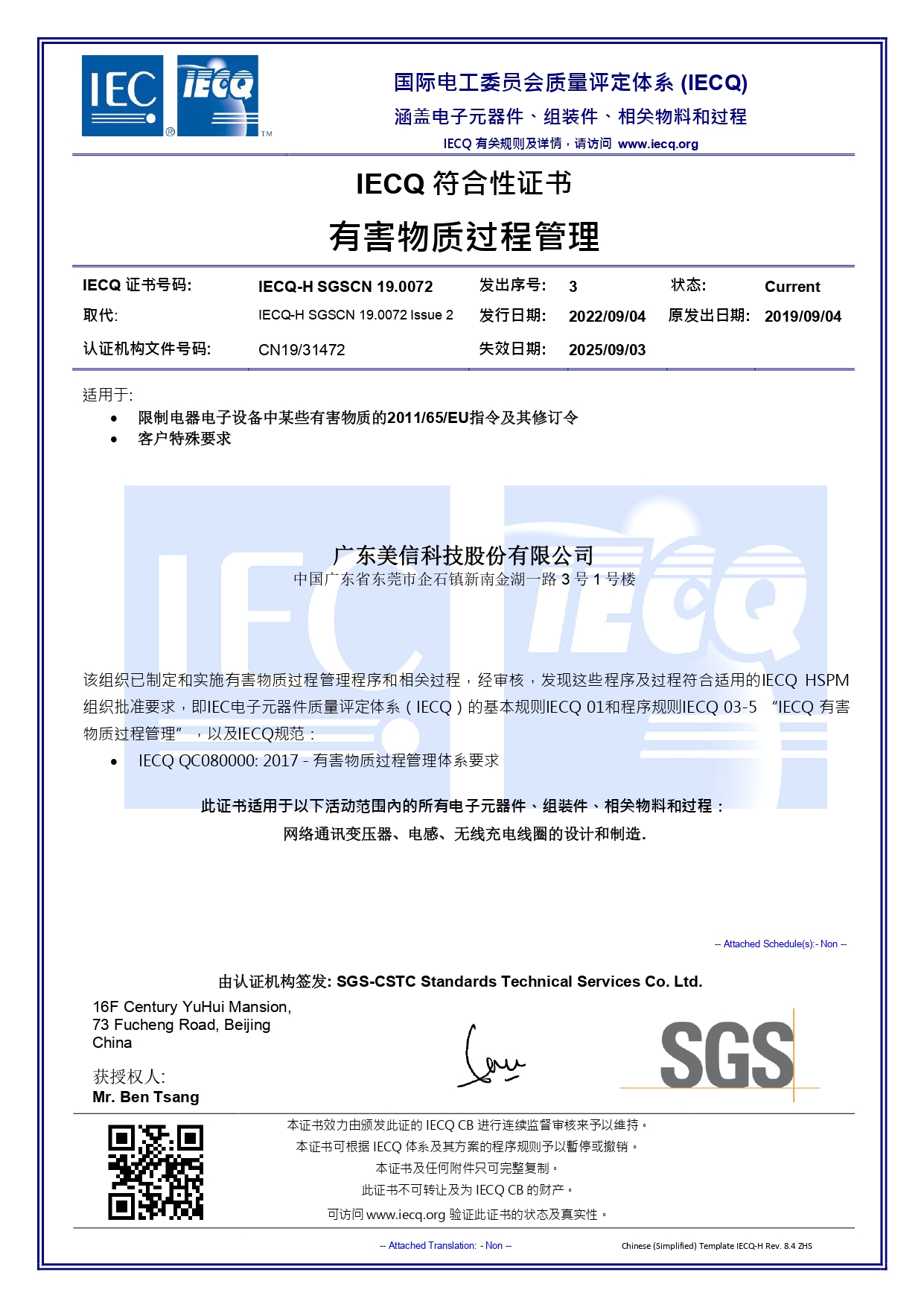 目前公司所有产品均已符合欧盟RoHS指令及REACH法规标准,部分产品可满足无卤要求,即:溴Br<900ppm、氯Cl<900ppm、Br+Cl<1500ppm