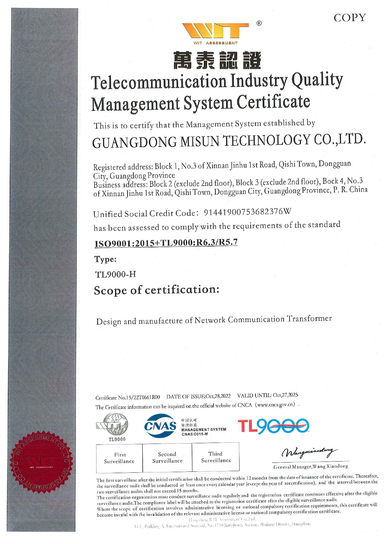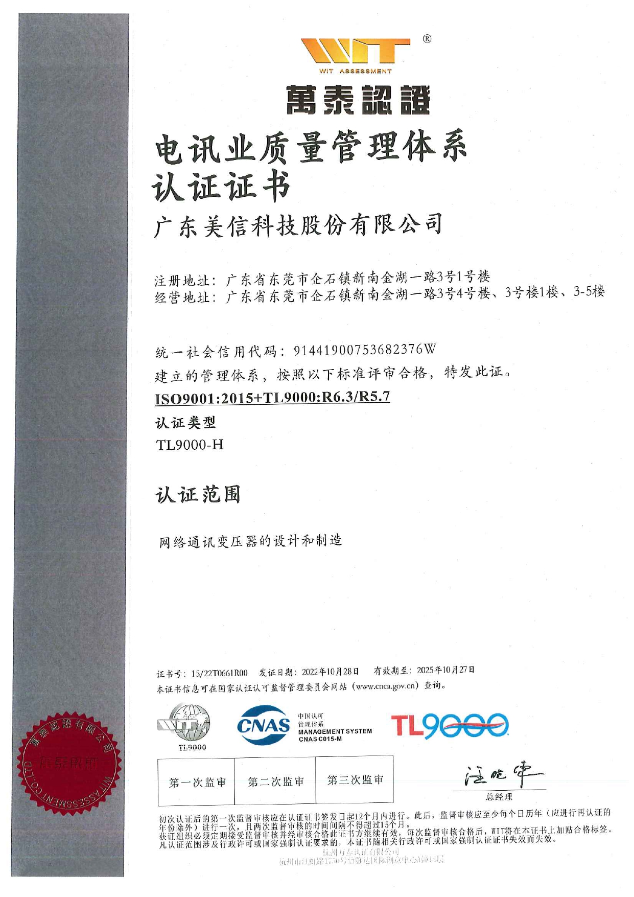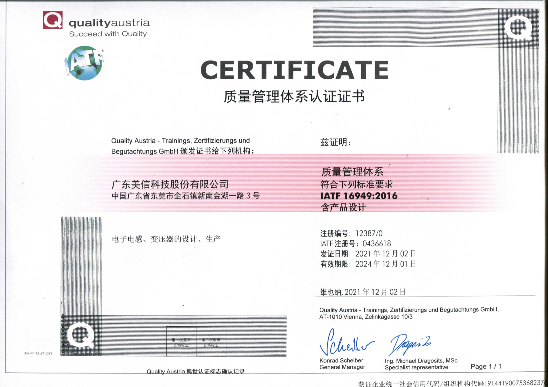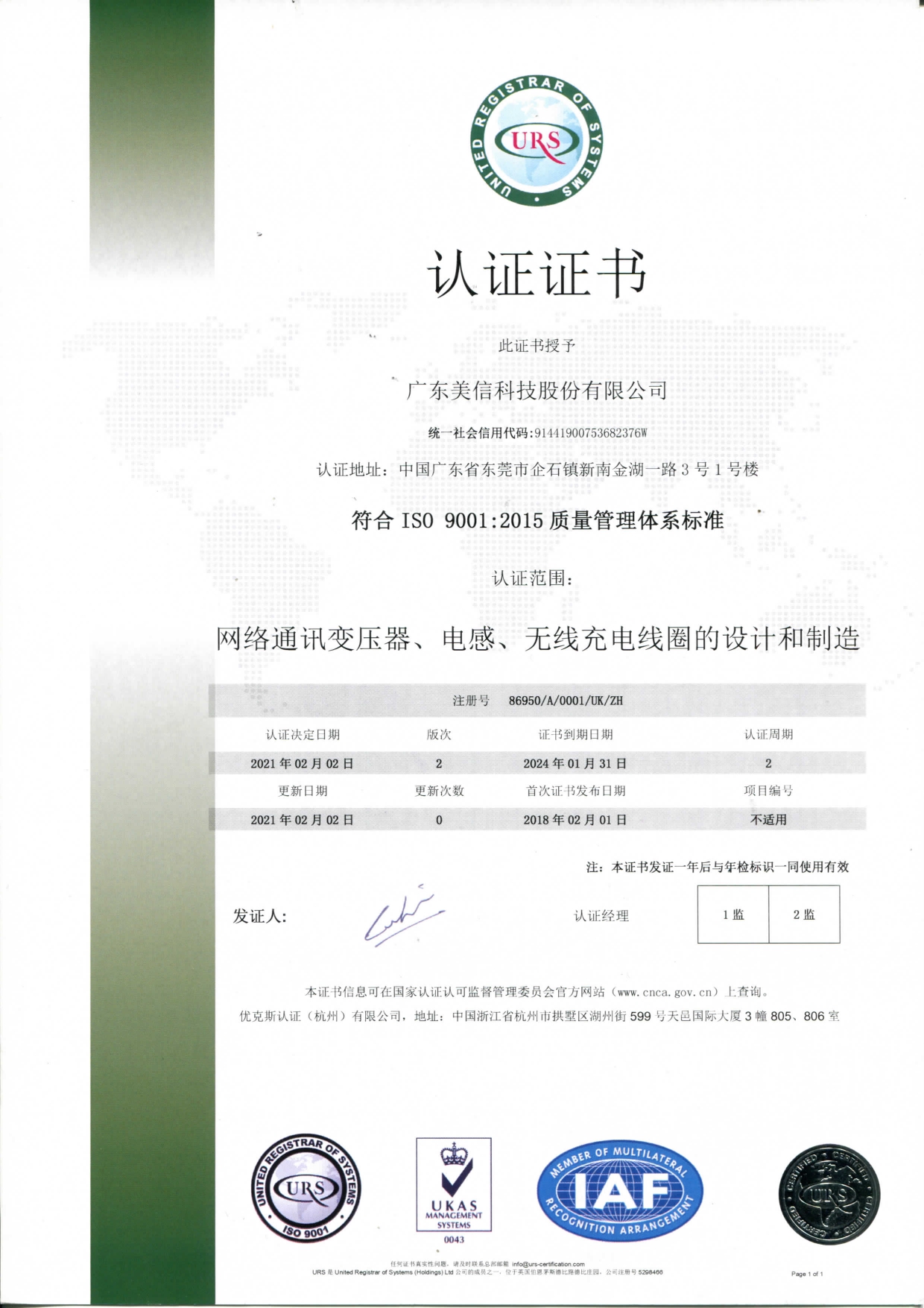 公司已建立并完善质量、环境、职业健康安全管理体系,推行流程化管理。并已通过IS09001:2015、IATF16949: 2016、TL9000、IS014001:2015、QC080000:2017、IS045001:2018体系认证。