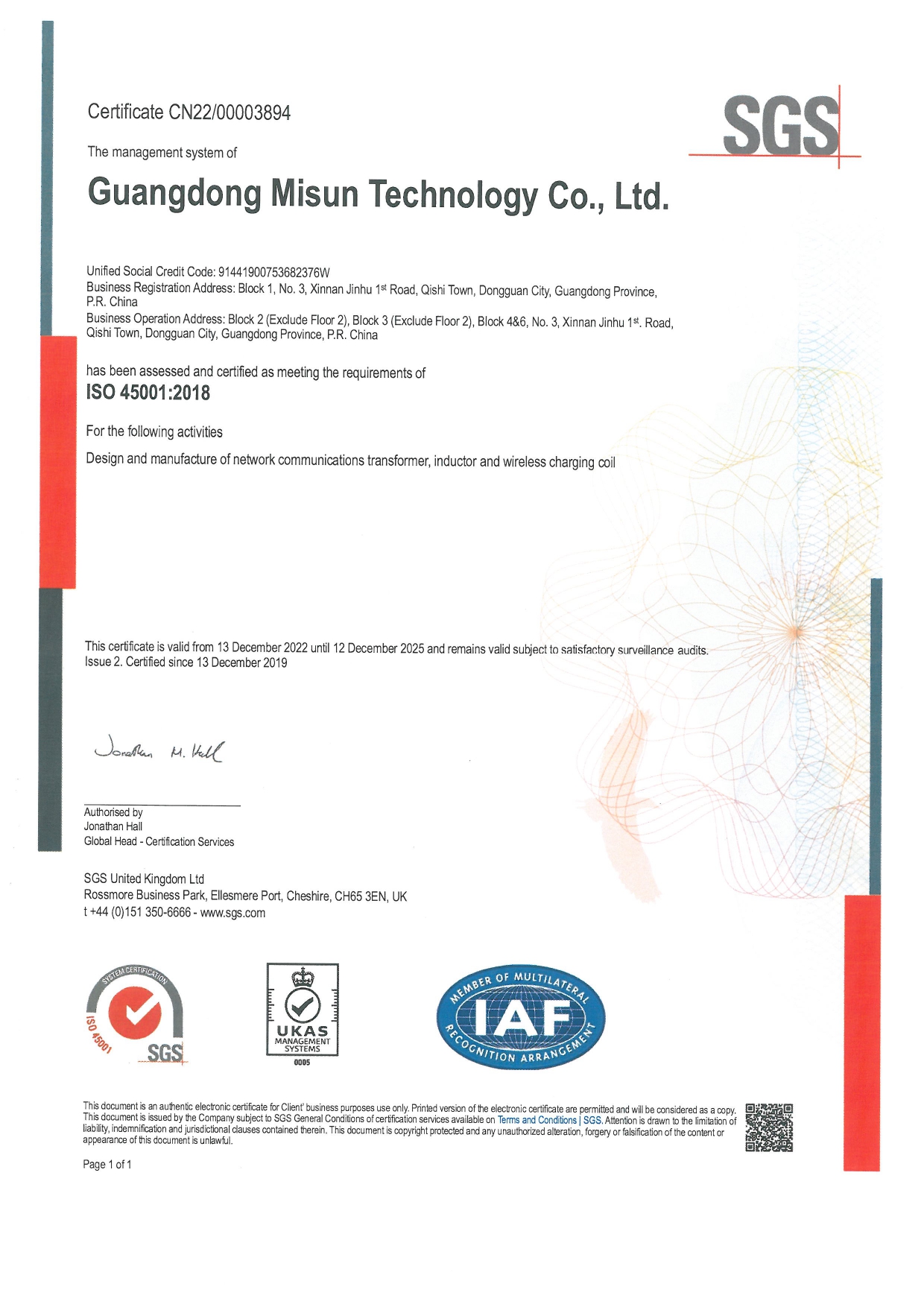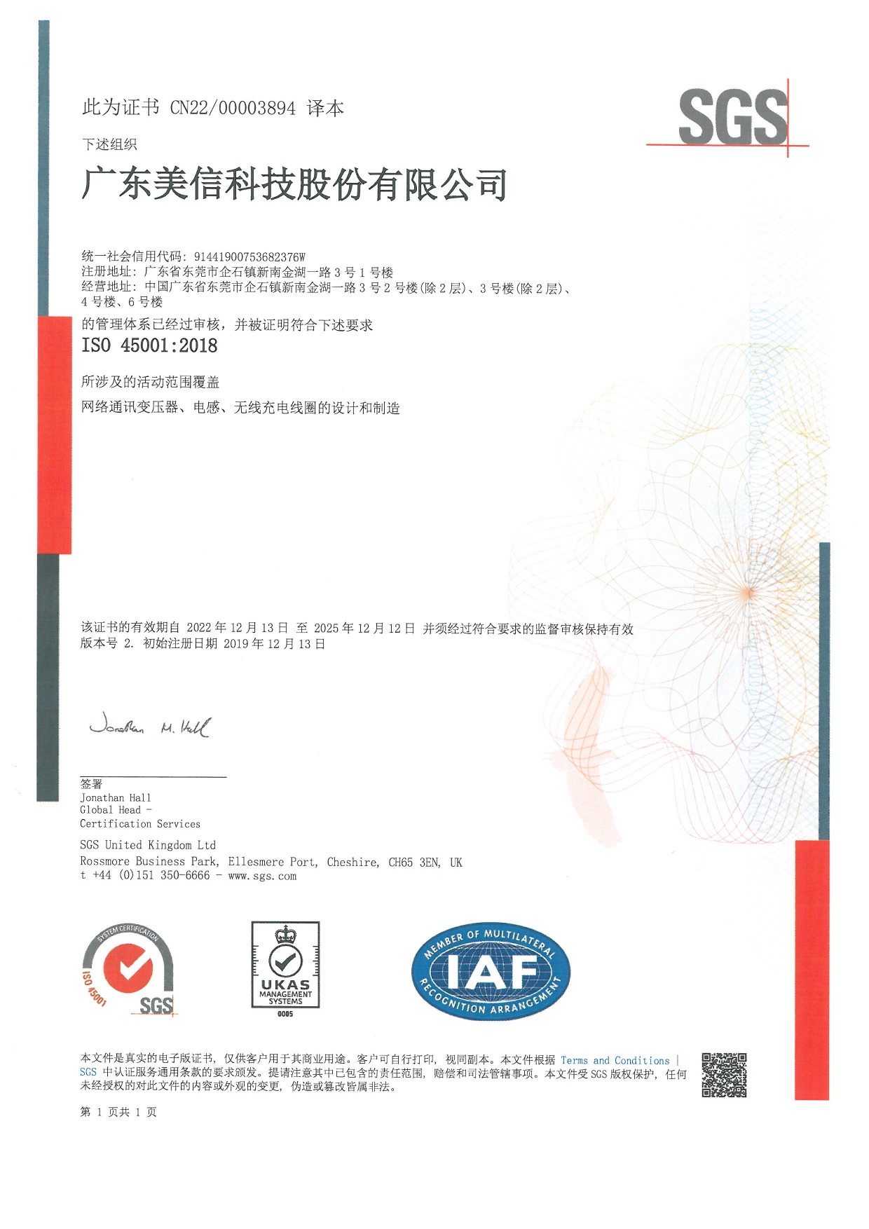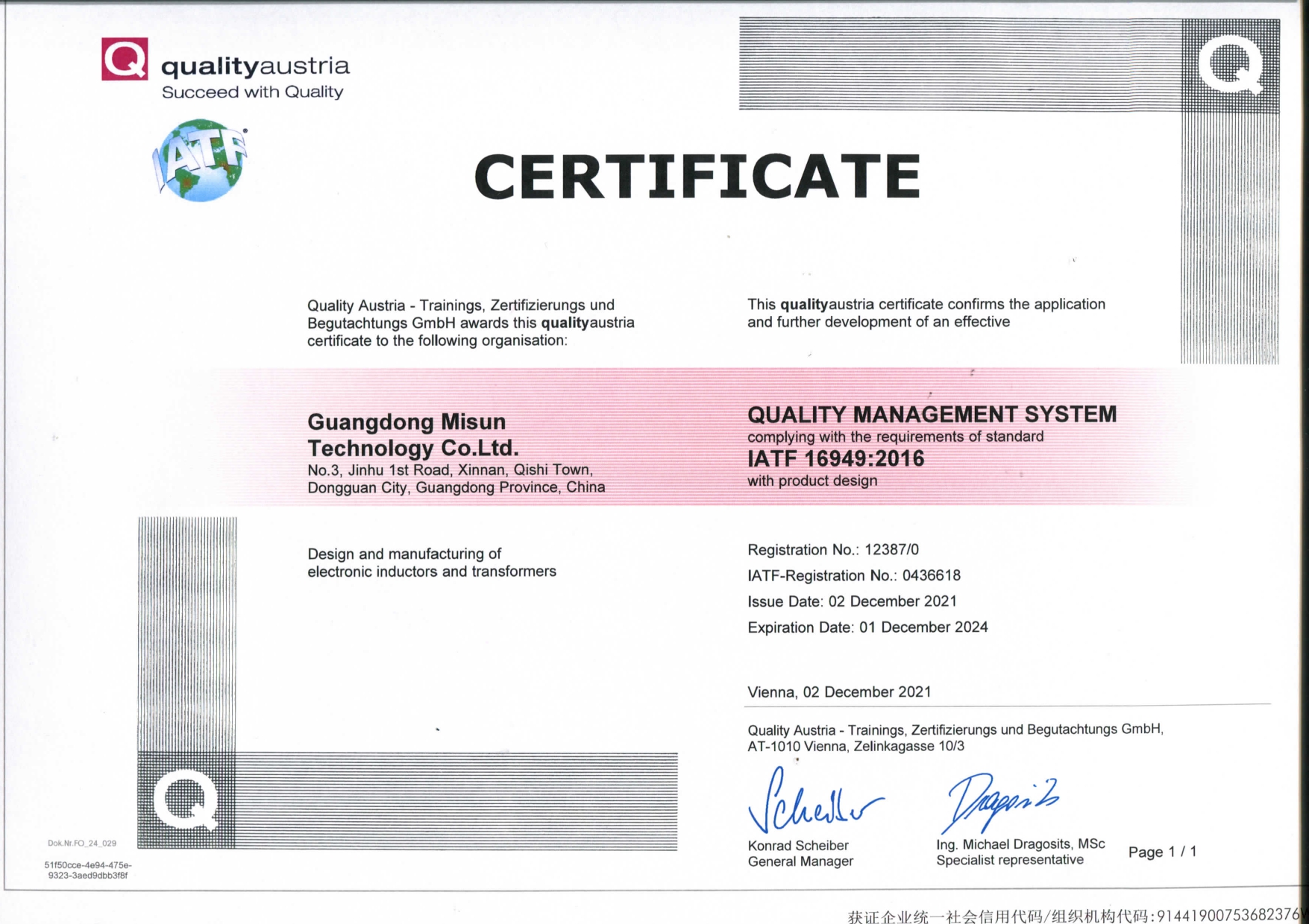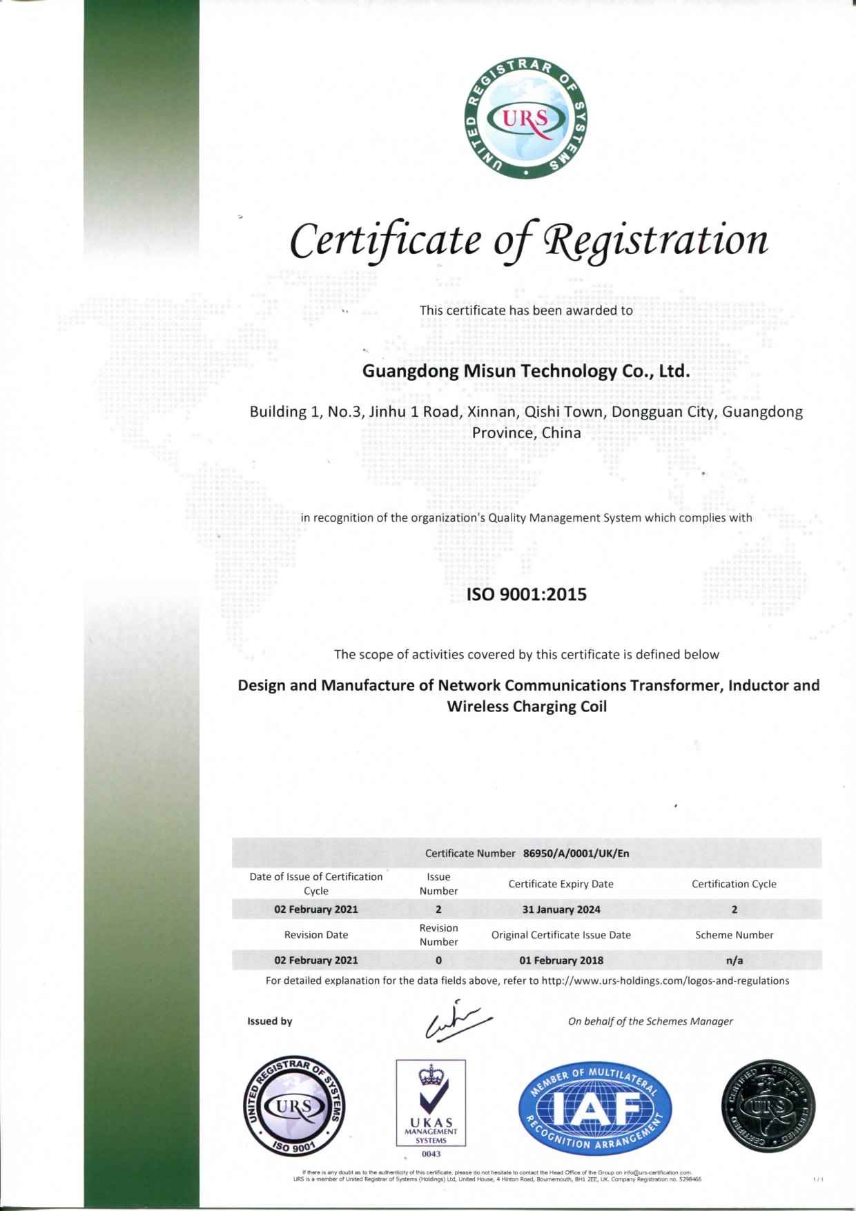 公司已建立并完善质量、环境、职业健康安全管理体系,推行流程化管理。并已通过IS09001:2015、IATF16949: 2016、TL9000、IS014001:2015、QC080000:2017、IS045001:2018体系认证。